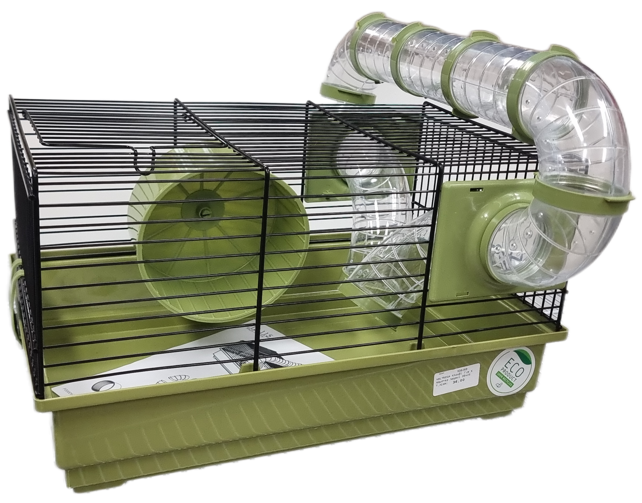 Κλουβί για χάμστερ με τούνελ και ρόδα.