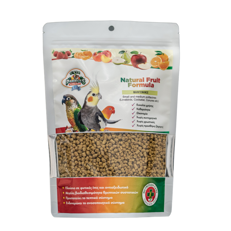 Η Natural Herbal Formula Μaintenance, είναι μια πλήρης σχηματοποιημένη τροφή (pellets) της σειράς Complete Diet της Evia Parrots. Είναι ιδανική για περίοδο συντήρησης για μικρούς και μεσαίου μεγέθους παπαγάλους όπως Lovebirds, Cokatil, και μικρές Conures. Παρασκευάζετε από τρόφιμα βιολογικής προέλευσης και σε θερμοκρασίες που φτάνουν έως 80oC, παρέχοντας φυσικές θρεπτικές ουσίες με μεγάλη βιοδιαθεσιμότητα και ασφαλείς από μικρόβια και μυκοτοξίνες.