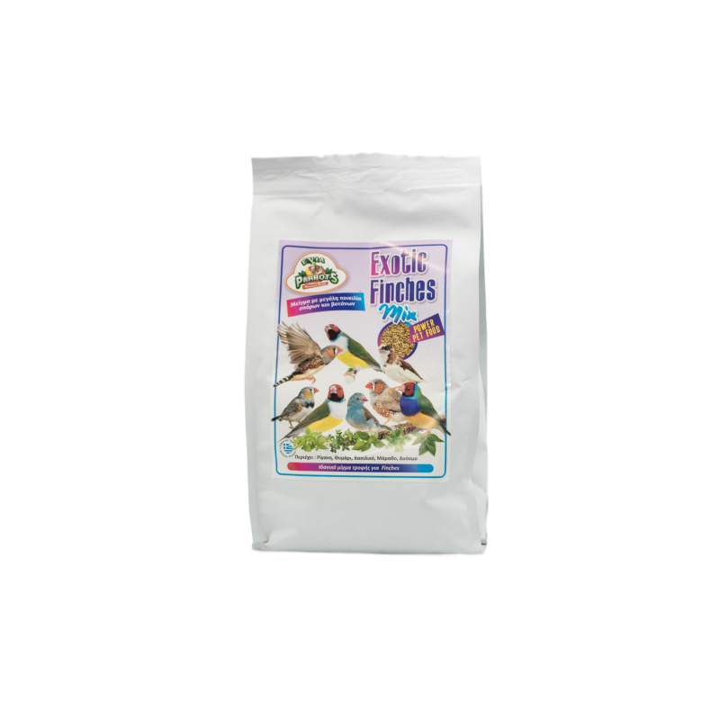Ιδανικό μείγμα τροφής για finches. Περιέχει μεγάλη ποικιλία σπόρων (Ασπουρι, Βρωμη, Κεχρι κιτρινο, Κεχρι κοκκινο, Λυναρι, Νιζερ, Πανικουμ κιτρινο, Σουσαμι, Γρασιδι, και βοτάνων ( Ρίγανη, Θυμάρι, Βασιλικό, Μάραθο, Δυόσμο ) ενδείκνυται για τη σωστή και ισσοροπημένη διατροφή των finches.