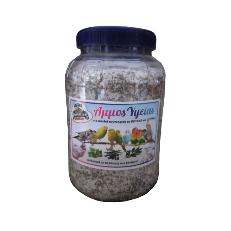 Evia Parrots Αμμος Υγείας Με Βότανα - Περιγραφή: Η συσκευασία περιέχει το μείγμα της άμμου που αποτελείται από ανθρακικό ασβέστιο , ζεόλιθο, φυσικά όστρακα και κοχύλια, ΘΥΜΑΡΙ, ΡΙΓΑΝΗ, ΔΑΦΝΗ, ΒΑΣΙΛΙΚΟ, ΤΣΟΥΚΝΙΔΑ ΚΑΙ ΔΥΟΣΜΟ. Τα συγκεκριμένα ΒΟΤΑΝΑ έχουν αντιβακτηριακές, αντιοξειδωτικές ιδιότητες και βοηθούν στη σωστή λειτουργία του πεπτικού συστήματος. Επίσης έχουν χωνευτικές ιδιότητες, διεγείρουν τη στομαχικη ατονία, διεγείρουν την όρεξη, καταπολεμούν τις ζυμώσεις και έχουν αντισηπτική δράση. - Ιδιότητες: Η άμμος περιέχει μέταλλα και ιχνοστοιχεία για πτηνα, επίσης περιέχει ασβέστιο, φώσφορο και κόκκους από όστρακα και κοχύλια που βοηθούν στην ανάπτυξη γέρων και υγειών οστών, βοηθούν στο σχηματισμό του κελύφους των αυγών και συντελούν στη σωστή λειτουργία του πεπτικού συστήματος. 2kg