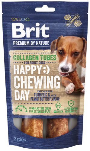 Η Brit Premium By Nature SN Collagen Tubes αποτελεί μέρος της νέας σειράς μασώμενων σνακς με κολλαγόνο για ενήλικους σκύλους. Τα σνακ αυτά είναι μια ασφαλής και υγιεινή εναλλακτική στα στικ από ακατέργαστο δέρμα (rawhide) και κάνουν κάθε μέρα μια «Happy Day» για τον σκύλο σας. Περιέχουν έως 70% κολλαγόνο βοοειδών για την υποστήριξη αρθρώσεων, τενόντων, δέρματος και τριχώματος, κουρκουμά με αντιφλεγμονώδεις ιδιότητες και φυστικοβούτυρο για ακαταμάχητη γεύση. Τα σνακ είναι φυσικά, ασφαλή, εύπεπτα, προσφέρουν μάσηση μακράς διαρκείας και διαθέτουν ποικιλία σχημάτων για τον καθαρισμό των δοντιών. ...Περισσότερα