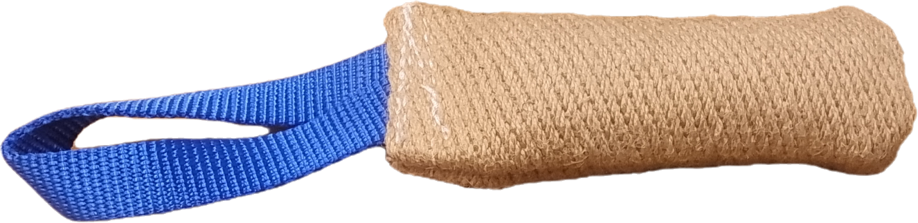 Λουκάνικο δαγκώματος από γιούτα, επενδεδυμένο με ραμμένο λουράκι καρπού. Μήκος 15 εκ. x 6 εκ.