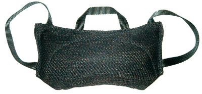 Μαξιλάρι δαγκώματος από ανθεκτικό συνθετικό ύφασμα με 3 θηλιές ζώνης. Με απαλή επένδυση. Διαστάσεις περίπου 30 cm x 15 cm x 7 cm