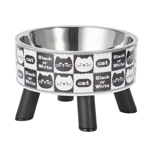 Ανοξείδωτο Μπολ με Ποδαράκια - Γατούλες Ασπρόμαυρες 14cm 200ml