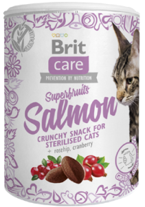 Brit Care Cat Superfruits Salmon is a crunchy, grain-free snack specially designed for the needs of neutered cats.