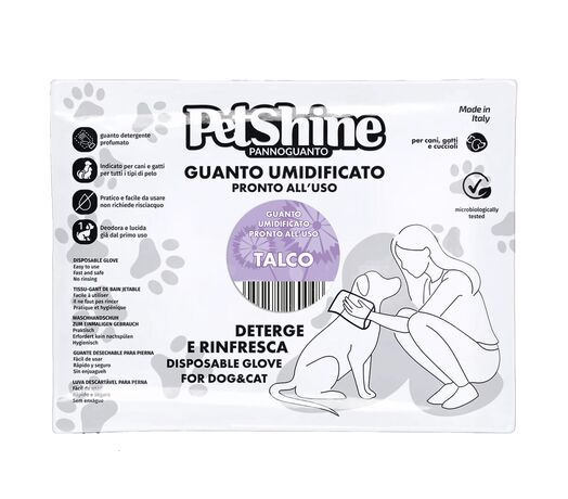 The glove is enriched with a special shampoo formula that does not foam and does not require rinsing. Ideal for all breeds, even long-haired ones. Regular use cleanses and protects the coat thanks to its moisturizing properties, without altering the pH. Its design also prevents moisture from penetrating the user's hand.
