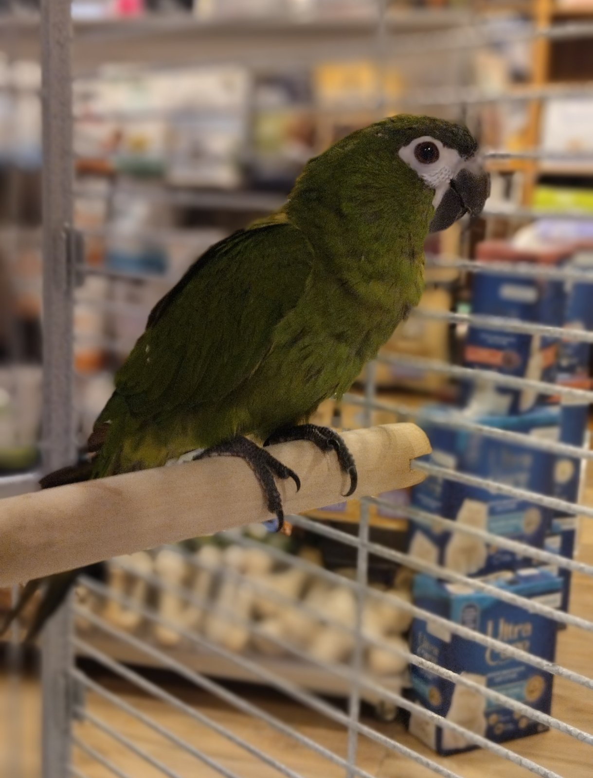 The Hahn’s Macaw (also known as the Noble Macaw) is the smallest representative of the macaws. It comes from Northern South America and stands out for its calm temperament, high intelligence and ability to speak. Extremely sociable and bonded with the owner.