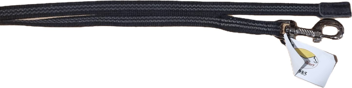 Leash made of cotton belt 15 mm wide with braided elastic bands. The leash fits perfectly in the hand and is very non-slip. Not suitable as a tow line. Color: Black.